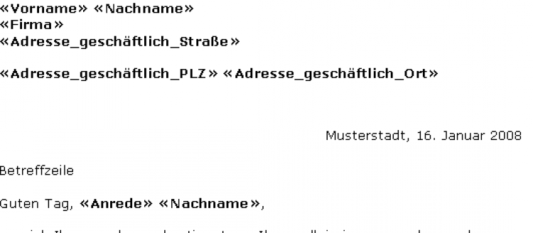 In den allermeisten Serienbrief-Fällen ist es jedoch mit weniger als zehn verschiedenen Feldern getan. Etwa so: