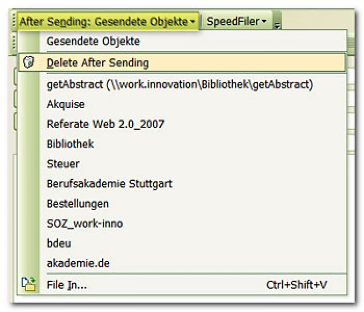 Der SpeedFiler funktioniert auch problemlos mit einem deutschsprachigen Outlook.