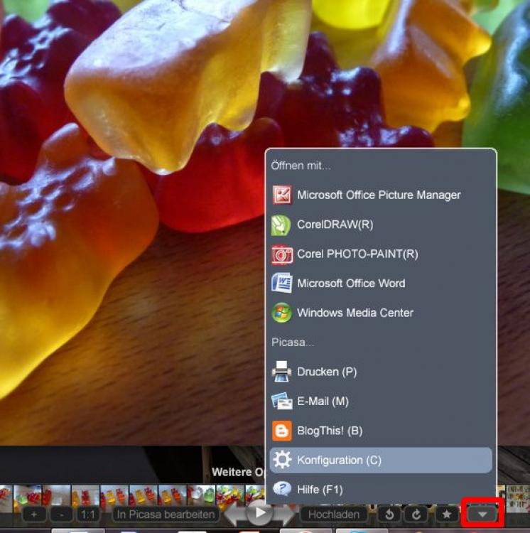 Picasa Viewer - Konfigurationsmenü