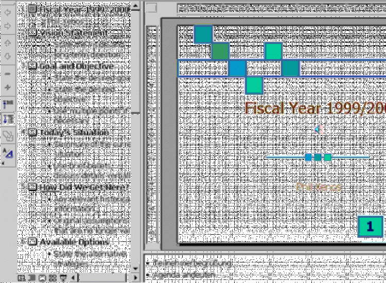 In diesem Bereich wird die Folie so angezeigt, wie sie in der Bildschirmpräsentation aussehen wird. Neben der Textbearbeitung ist hier insb. auch das Einfügen und Bearbeiten von Grafiken möglich.
