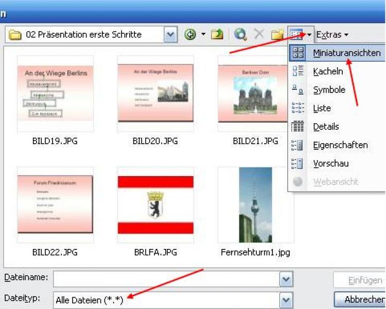 Bei Dateityp Alle Dateien(*.*) und der ausgewählten Ansicht Miniaturansichten finden Sie das gewünschte Bild am einfachsten.