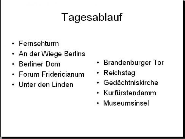 Öffnen Sie die in der vorherigen Aufgabe begonnene Präsentation Berlin00.ppt.