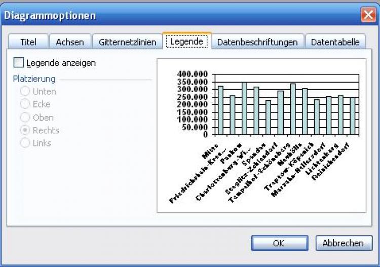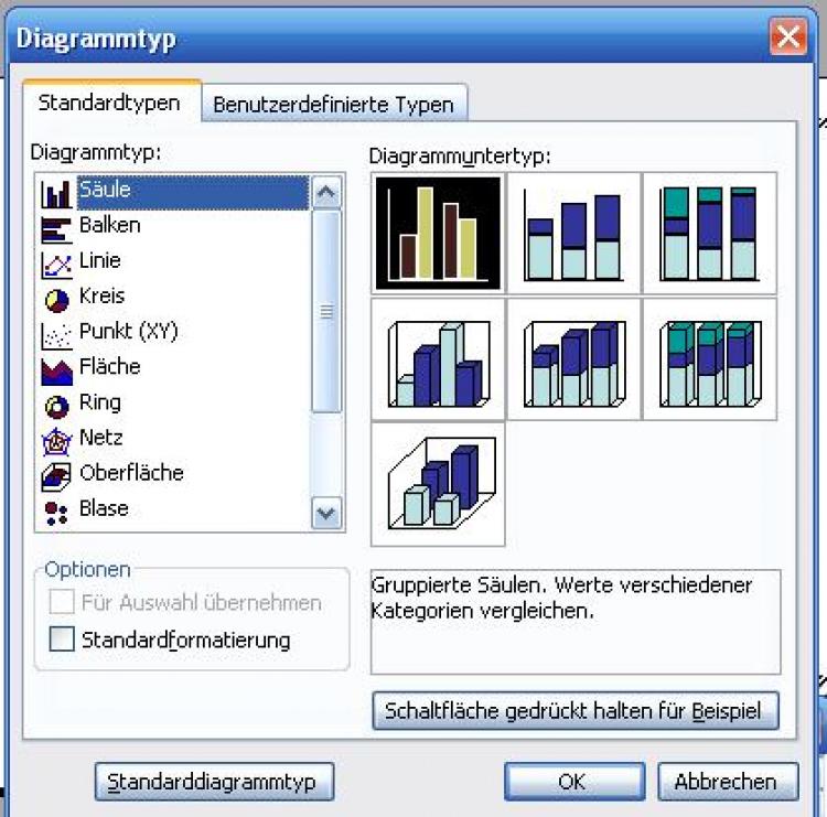 Über "Diagramm" - "Diagrammoptionen" ändern Sie die verschiedensten Möglichkeiten der Darstellung des Diagramms.