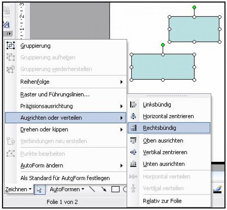 Zum Ausrichten markieren Sie die betreffenden Elemente und klicken auf das Button "Zeichnen" der Symbolleiste Zeichnen.
