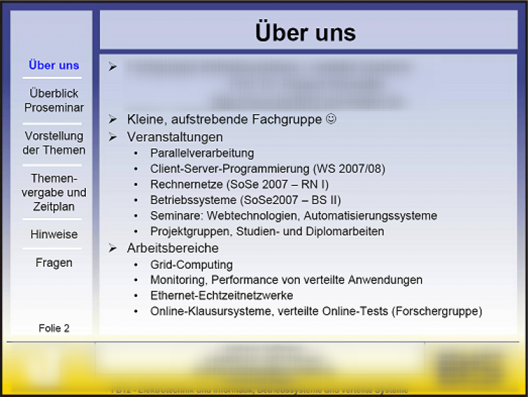 Die "Fachgruppe für verteilte Systeme" hätte besser auch den Text auf mehrere Folien verteilt.