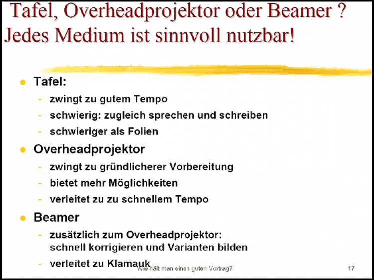 Das Vortrags-Thema "Wie hält man einen guten Vortrag?" lässt sich für diese Folie offenbar noch vertiefen.