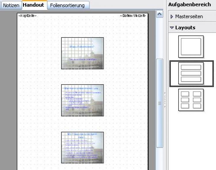 Über die Registerkarte Handout gelangen Sie in dieses Fenster.
