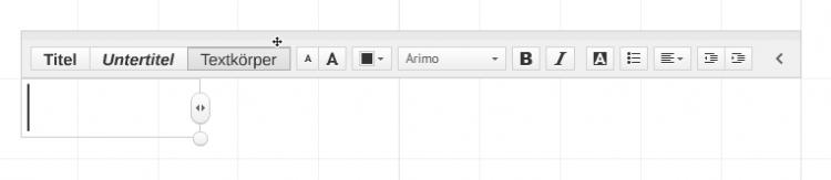 Um einen Text in Ihre Prezi einzufügen, klicken Sie ganz einfach an eine beliebige Stelle auf der Arbeitsfläche. Es öffnet sich ein Textfeld.