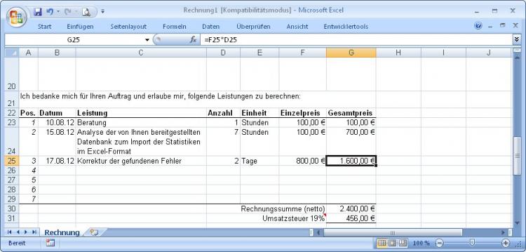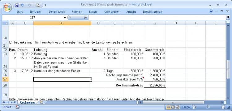 Excel-Rechnungsvorlage für alle Excel-Versionen nutzbar!