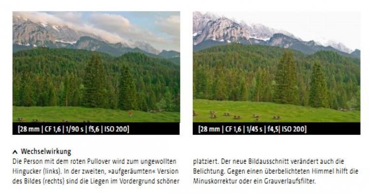Eine große Hilfe sind die vielen vergleichenden Bilder, die die ganze Bandbreite zwischen geknipstem und meist unbefriedigend missglücktem Anfängerbild und einer geglückten und anspruchsvoll umgesetzten Bild-Idee illustrieren.