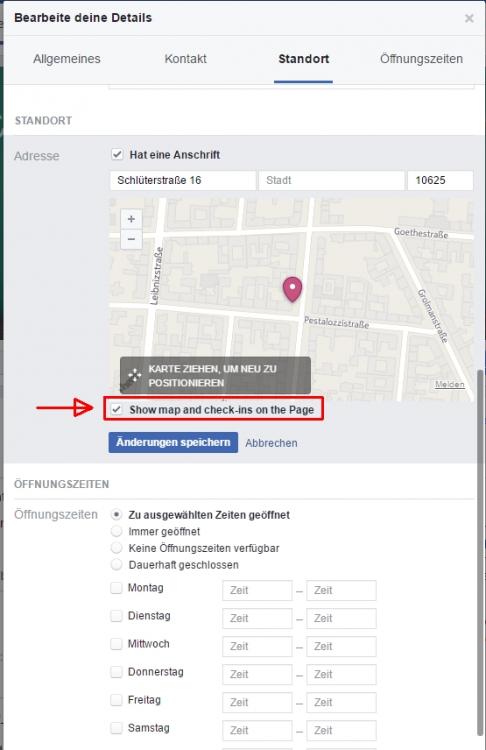 Ganz wichtig: Wenn Sie es noch nicht getan haben, sollten Sie Ihre Facebook-Unternehmensseite mit korrekten Standortdaten versehen (unter Info -> Seiteninfo bearbeiten -> Standort).