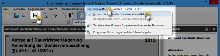 ElsterFormular: So starten Sie die Meldung einer Sondervorauszahlung.