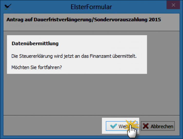 Mit "Weiter" sorgen Sie schließlich für den Start der elektronisch signierten Datenübertragung.