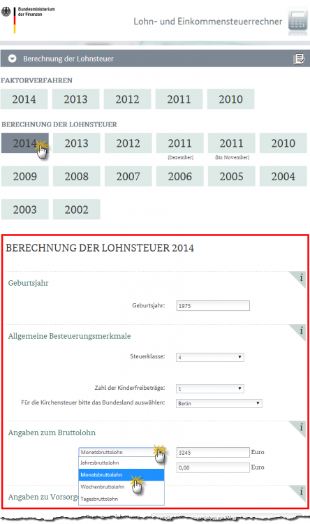 Eingabemaske des amtlichen Online-Lohnsteuerrechners