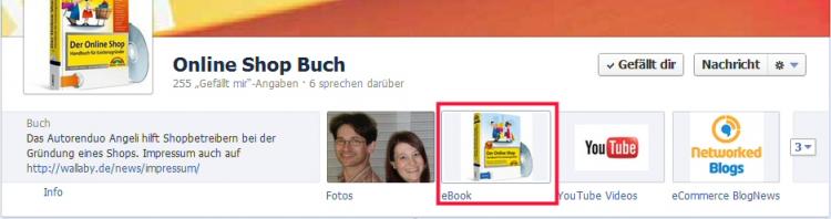 Selbst gestaltete iFrame-Tabs auf der Facebook-Seite von Online Shop Buch.