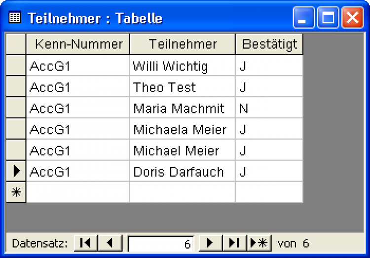 In der Teilnehmer-Tabelle nennen Sie entsprechend diese Kenn-Nummer wie in der folgenden Abbildung: