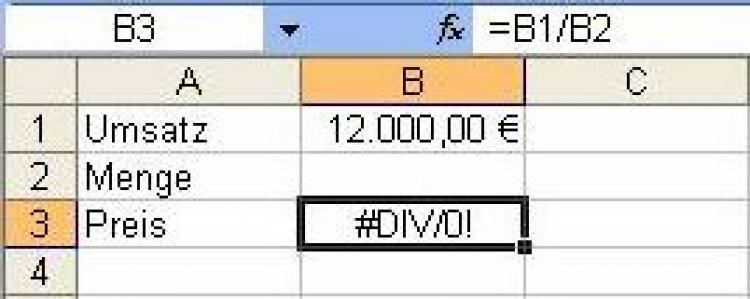 Eine der häufigsten Fehlermeldungen ist "#Div/0!". Diese Meldung erreicht Sie immer dann, wenn durch einen Zelle dividiert wird, in der sich der Wert "Null" oder aber kein Wert befindet. Mathematisch gesehen ist eine Division durch Null nun mal nicht erlaubt. Daran hält sich Excel exakt und nimmt keine Rücksicht darauf, dass Sie nur Ihre Daten noch nicht vollständig in ein Tabellenmodell eingetippt haben.