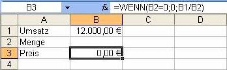 Besonders, wenn Sie mit Tabellen arbeiten, die Sie an Dritte weiterleiten, macht es keinen tollen Eindruck wenn dort lauter #Div/0!-Fehler auftauchen, auch wenn ansonsten alle Rechenschritte völlig korrekt sind und das Rechenmodell vom Layout her punktet. Deshalb müssen Sie Abhilfe schaffen. Lösen können Sie das Problem mit Hilfe einer "WENN-Funktion".