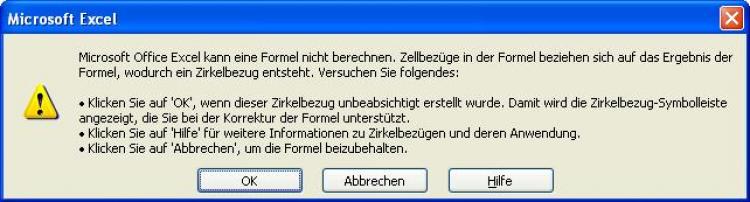 Excel meldet sich in Sachen Zirkelbezug zu Wort.