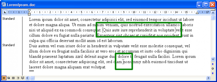 Es gibt noch ein paar mehr dieser besonderen Zeichen, die trotzdem nicht verschwinden, wenn Sie diese Option ausgeschaltet haben. Textmarken beispielweise können mit eckigen Klammern angezeigt werden, wie das folgende Bild zeigt: