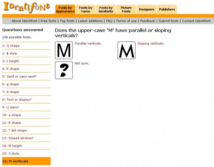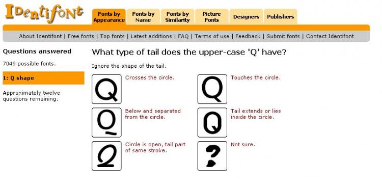 Ganz anders arbeitet Identifont. Dort geben Sie zu der gesuchten Schrift die jeweiligen Merkmale als Auswahl unter Optionen ein: