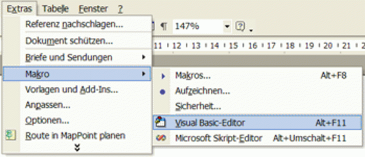 In allen Office-Anwendungen wird der Visual Basic-Editor auf die gleiche Weise aufgerufen. Hierzu wählt man über Makro im Extras-Menü den Visual Basic-Editor. Access 97 nimmt in Bezug auf VBA eine Sonderstellung ein: Makros in Access 97 werden nicht in Visual Basic programmiert, aber Module. Diese Module können im Datenbankfenster geöffnet werden bzw. stehen sie auch in Formularen und Berichten zur Verfügung.