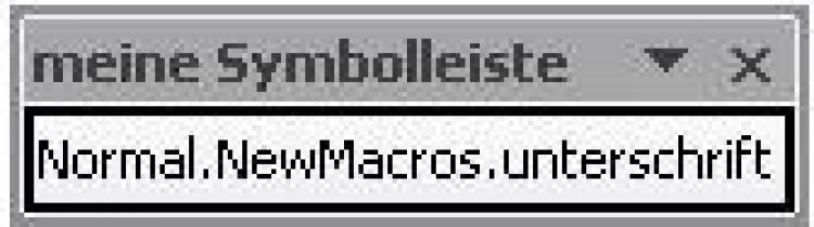 Nach OK erscheint eben diese. Schieben Sie nun dort über die Registerkarte "Befehle", Kategorien "Makros", den Makronamen Normal.Newmacros.unterschrift aus dem Feld "Befehle" hinein.