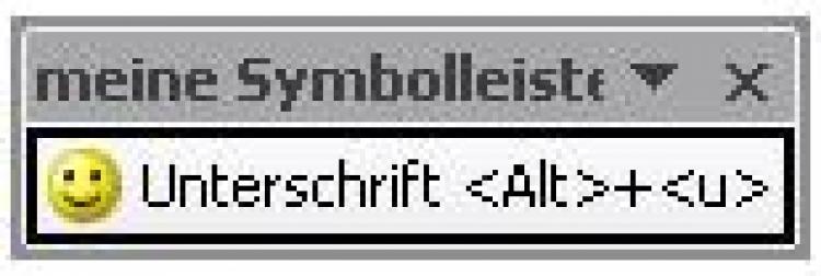 Sie möchten sich nicht alle neuen Tastenkombinationen merken und u.U. auch auf einen Klick das neue Makro benutzen. Dazu entwerfen Sie eine neue Symbolleiste und fügen für die Prozedur "Unterschrift" ein Symbol mit Text ein.