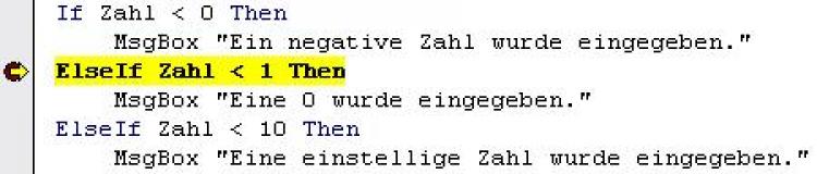 Nach Start der Prozedur z.B. durch <F5> erfolgt ein schneller Durchlauf, der am Haltepunkt anhält.