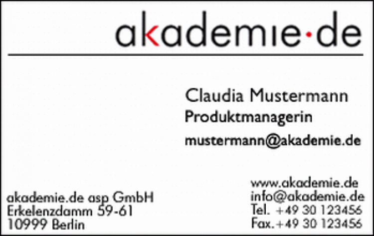 Praktischer Nebeneffekt: Erstens erleichtern Sie Ihren Geschäftspartnern dadurch die erwünschte Übernahme Ihrer Daten in deren Adress- und Kontaktverwaltung. Und zweitens ersparen Sie sich bei Änderungen nachrangiger Informationen teure Neudrucke.