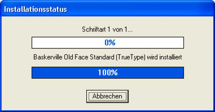 Wenn Sie eine neue Schrift installieren wollen, ist es inzwischen erfreulich einfach. Sie erhalten beim Download eine TTF-Datei und schieben diese mit gedrückter Maus in das Verzeichnis C:\Windows\Fonts\ (oder den entsprechenden Pfad, wenn Windows bei Ihnen anders installiert ist). Dann erscheint kurz der Dialog wie im folgenden Bild und das war's schon.