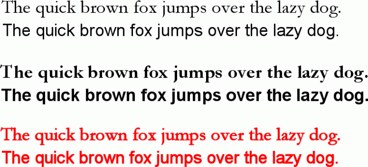 Magere (oben), fette (Mitte) und fehlerhaft durch Umriss verdickte Schrift (unten, rot).
