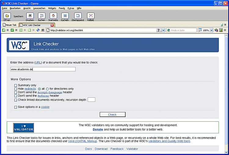 Startseite des Link Checkers