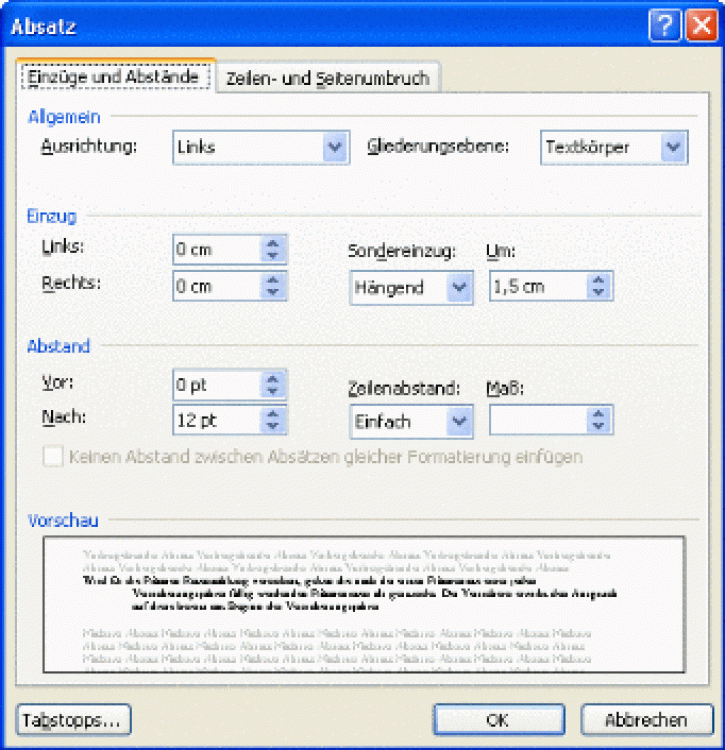 Optionen zur Absatzformatierung im Dialogfenster Absatz