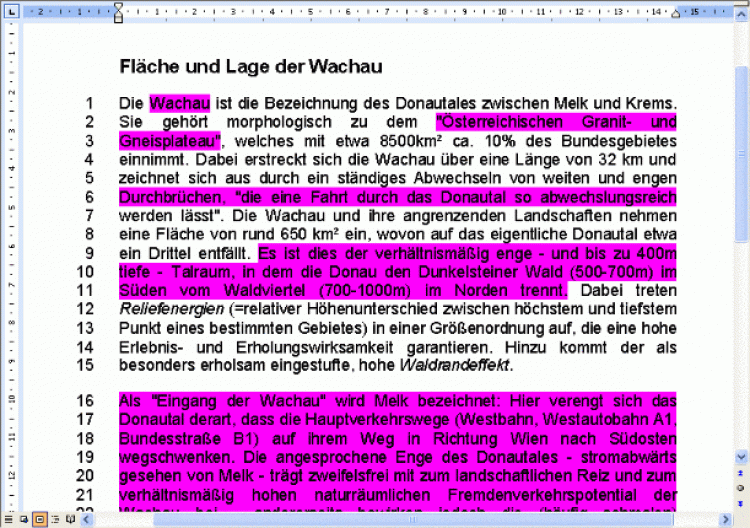 Markieren Sie folgende Textabschnitte mit der Maus und heben Sie diese farbig hervor (Sie müssen vor dem Markieren das Symbol Hervorheben in der Format-Symbolleiste anklicken.):