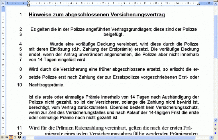 Unterdrücken Sie beim vierten Absatz die Zeilennummern.