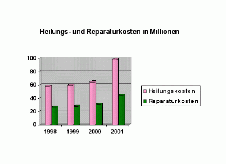 • Erstellen Sie unterhalb der Überschrift Heilungs- und Reparaturkosten in Millionen ein Diagramm, dem folgende Tabelle zugrunde liegt: