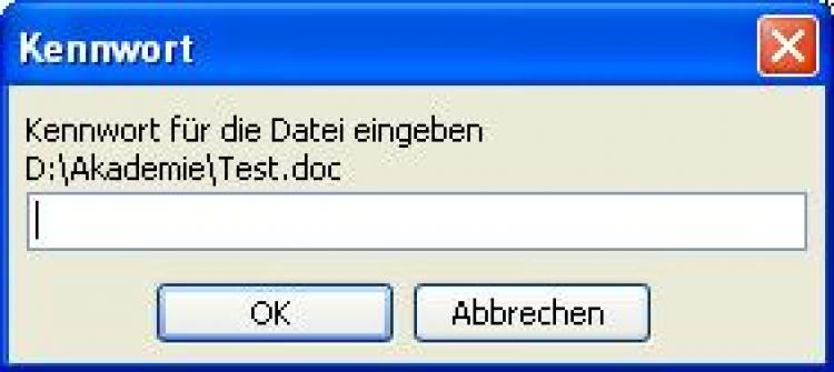 Wenn Sie eine Datei öffnen, werden Sie nach dem zugehörigen Kennwort gefragt. Jetzt müssen Sie genau die Zeichenkette eingeben, die exakt mit einer vorgegebenen geheimen Zeichenkette - dem Kenn- bzw. Passwort - übereinstimmt.