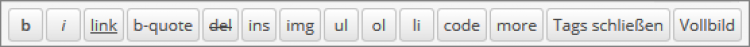 Die Code-Ansicht verfügt in der Standardausführung nur über 15 Buttons, diese können aber ganz einfach entweder manuell oder z. B. mit Hilfe des Plugins "WP - AddQuicktag" von Frank Bültge erweitert werden.