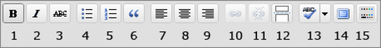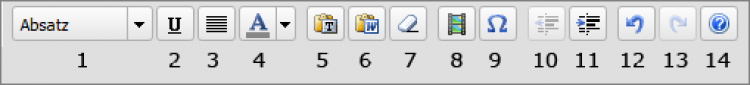 Die Funktionen der einzelnen Buttons sind selbsterklärend und entsprechen den gängigen Symbolen aus Textverarbeitungs- oder E-Mail-Programmen (erweiterte Ansicht) bzw. anderen CMS. Fähigkeiten des Editors, die einer Erklärung bedürfen - wie z. B. Bilder einfügen - werden im Folgenden näher erläutert.