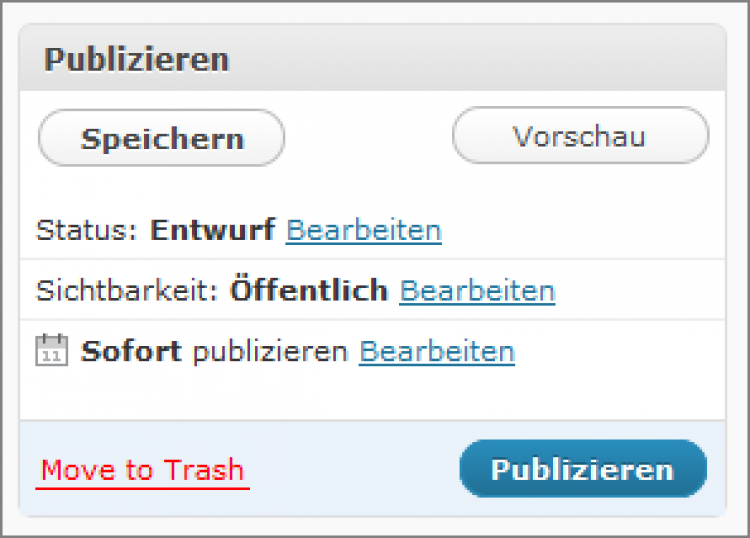 Möchten Sie einen Artikel nun publizieren, so dass er auch für die Besucher im Frontend sichtbar ist, so müssen Sie im Modul "Publizieren" auf den Button "Publizieren" klicken. Möchten Sie den Artikel lediglich speichern, um zu einem späteren Zeitpunkt daran weiterzuarbeiten, klicken Sie auf den Button "Speichern".