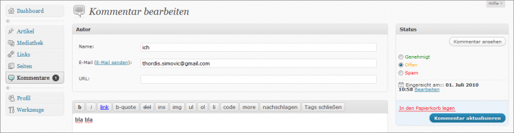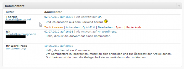 Hier haben Sie dann die gleichen Bearbeitungs-Links wie in der Übersicht der Kommentare: