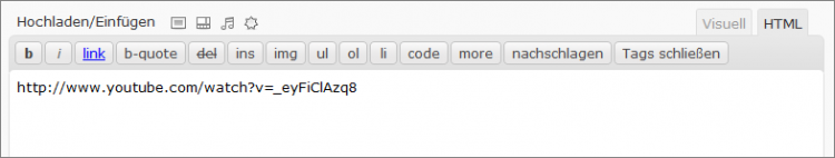 Damit diese Einbettung funktioniert, muss die Option "Versuche automatisch alle Klartext-URLs einzubinden." im Admin-Menü "Einstellungen/Mediathek" aktiviert sein. Bedenken Sie, dass ein nachträgliches Deaktivieren dazu führt, dass auch eingebettete Medien in bereits veröffentlichten Artikeln für die Besucher nicht mehr sichtbar sind.