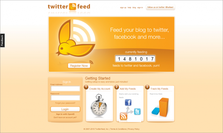 Sie müssen sich dort lediglich registrieren und dann die Daten Ihres Twitter-Kontos und den Feed für Ihren Blog angeben.