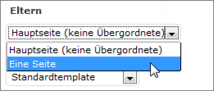 Eine Eltern-Seite auswählen