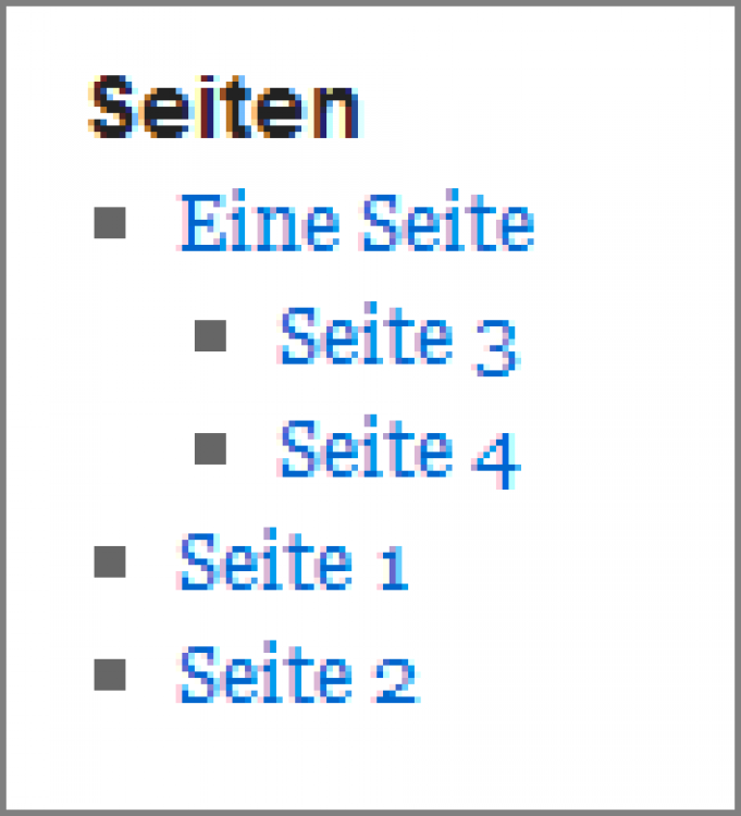 Sollte Ihr Theme keine horizontale Anordnung der Seiten vorsehen, sondern diese in der Sidebar (im Seitenbereich) auflisten, könnte es so aussehen wie in der folgenden Abbildung: