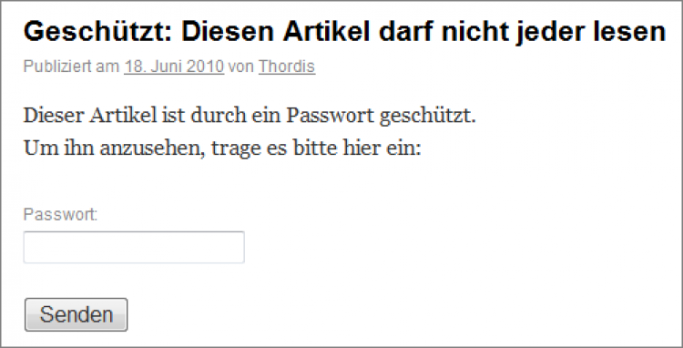 Passwortgeschützt: Sie können dem Artikel ein Passwort zuweisen, sodass der Artikel nur von Besuchern aufgerufen werden kann, die das Passwort kennen.