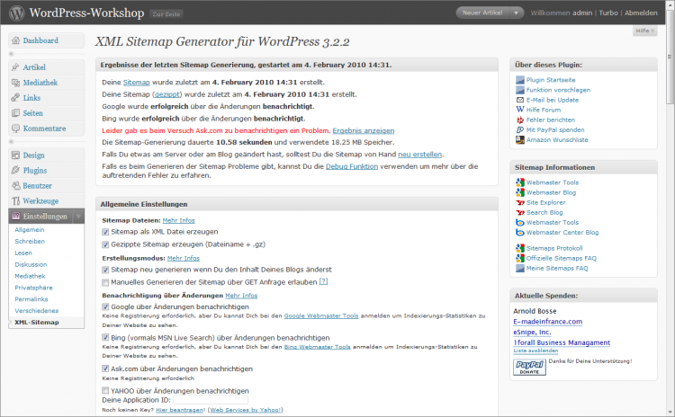 Das war es erstmal mit den Plugins. Ich habe Ihnen hier einige Plugins vorgestellt, die WordPress erweitern, so dass alles vorhanden ist, was eine kleine bis mittelgroße Website braucht: Kontaktformular, Statistik und eine XML-Sitemap.