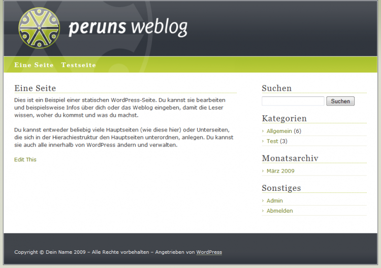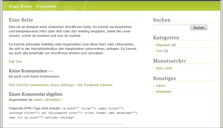 So schaut dann eine Seite aus, wenn ich die page.php hochgeladen habe: