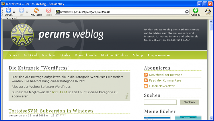 Und hier zur Verdeutlichung der Seitentitel der Kategorie "WordPress" in meinem Weblog: